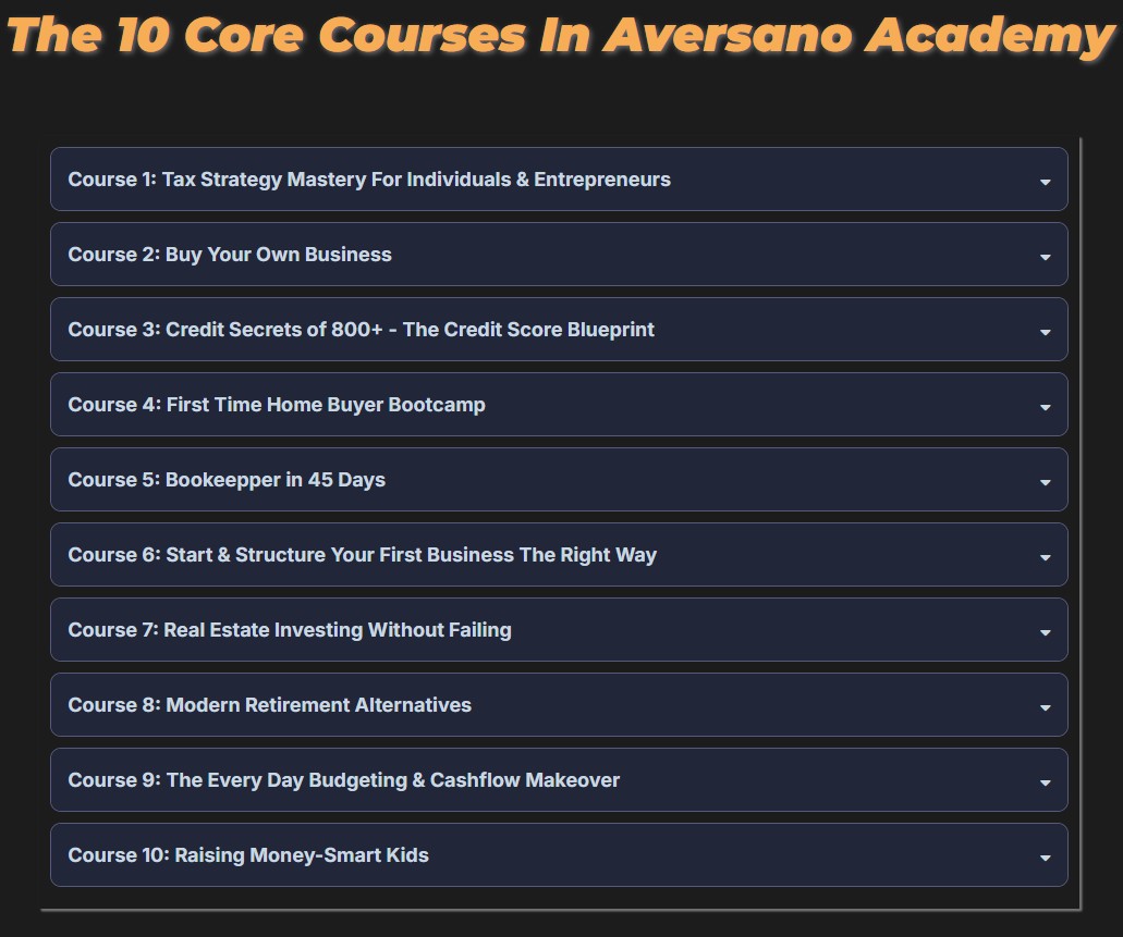 $1,000 DISCOUNT on becoming a founding member of Aversano Academy that will get you access to all the courses in the Aversano Academy (10 courses schedule to be released in the 1st half of 2026, including: